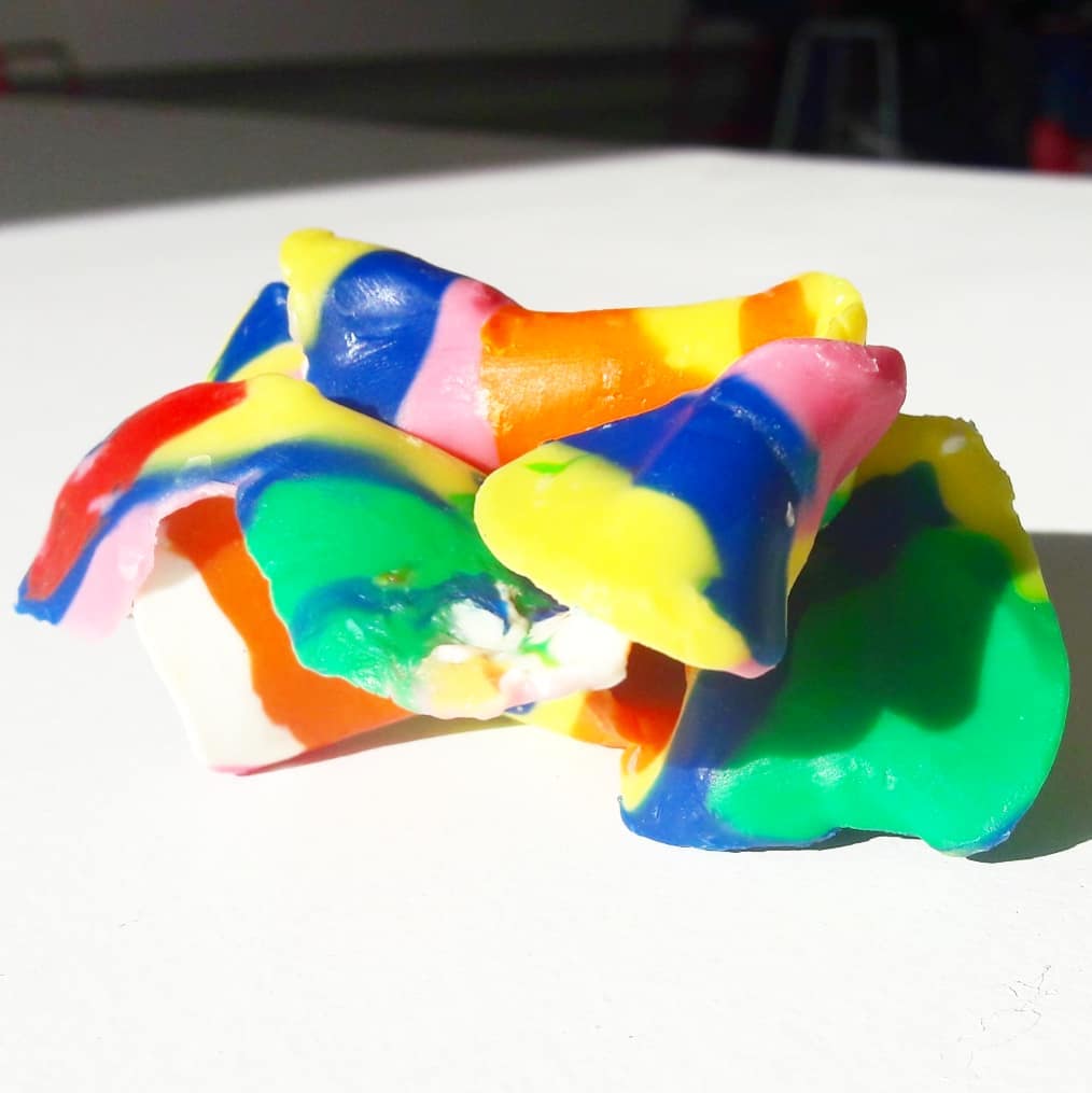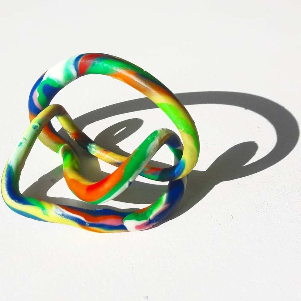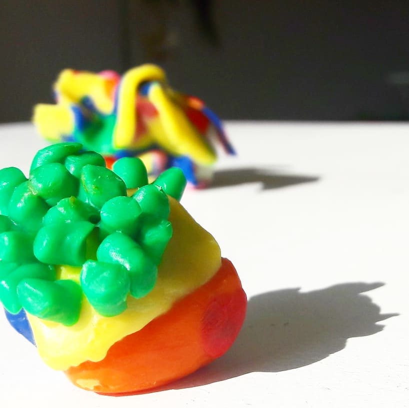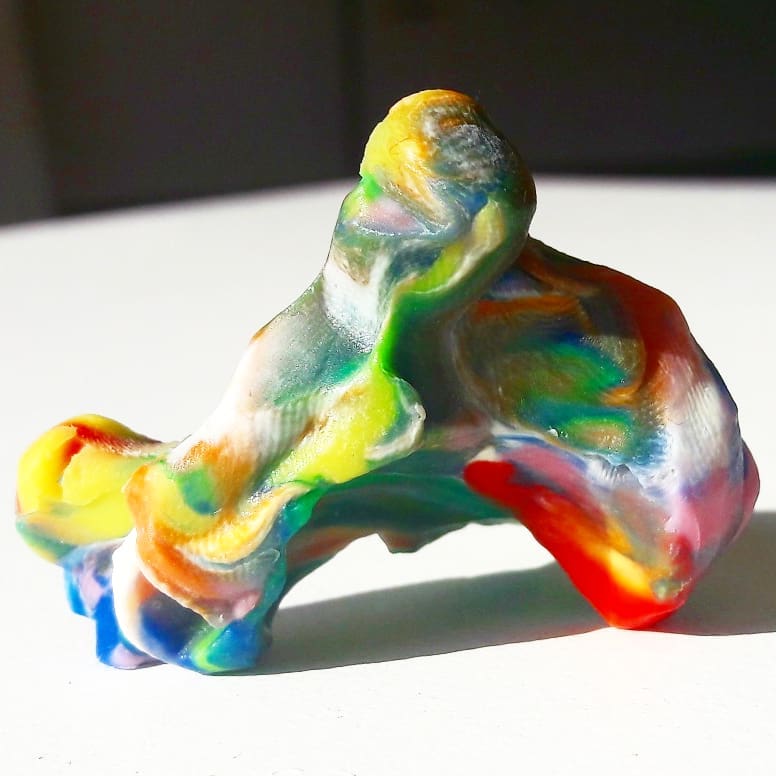 Pourquoi ne pas jouer avec la couleur directement comme matière ? Une des première manière de m’éloigner de la feuille est de me saisir de matières colorées et de chercher des formes et un vocabulaire particulier et remanié entrant toujours dans le champs de l’abstraction.