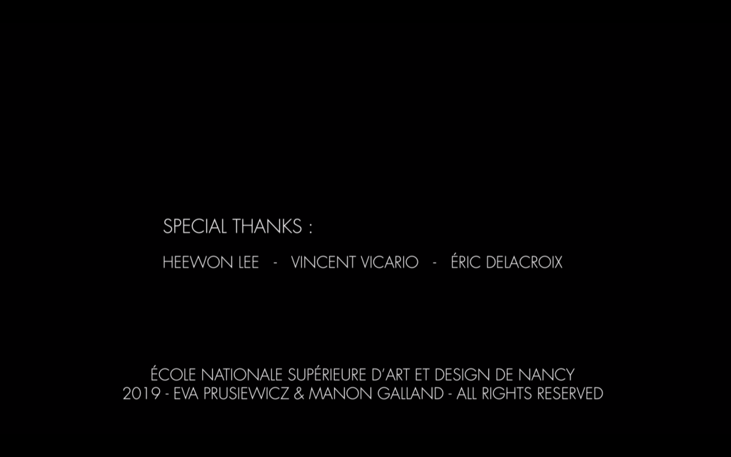 Notre projet est de créer un espace et un temps dédié à la rêverie consciente. Laisser les pensées des spectateurs s’échapper, s’envoler durant la vidéo : Qu’est-ce que je vais manger ce soir ? Ça fait longtemps que je n’ai pas vu cette personne et si je l’appelais ? Je devais voir mon proprio ! Comme un temps de méditation sur soi-même, sur sa vie : laisser chacun voir dans cette vidéo abstraite ce qu’il veut y voir. Il s’y mêlent les océans, les constellations et les bleus profonds, mais qu’est-ce vraiment ? Les spectateurs sont discrètement ramenés à leur réalité par de ancrages : des changements de rythmes, des sons, des ambiances.