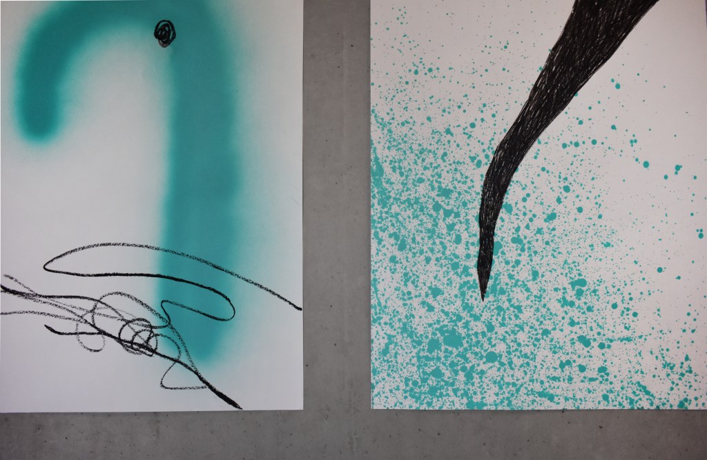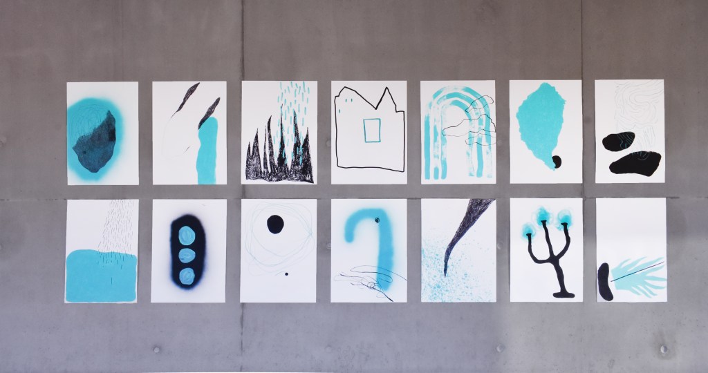 Matériaux : Peinture acrylique, posca, marker, crayon de couleurs, pastel gras et peinture aérosol
