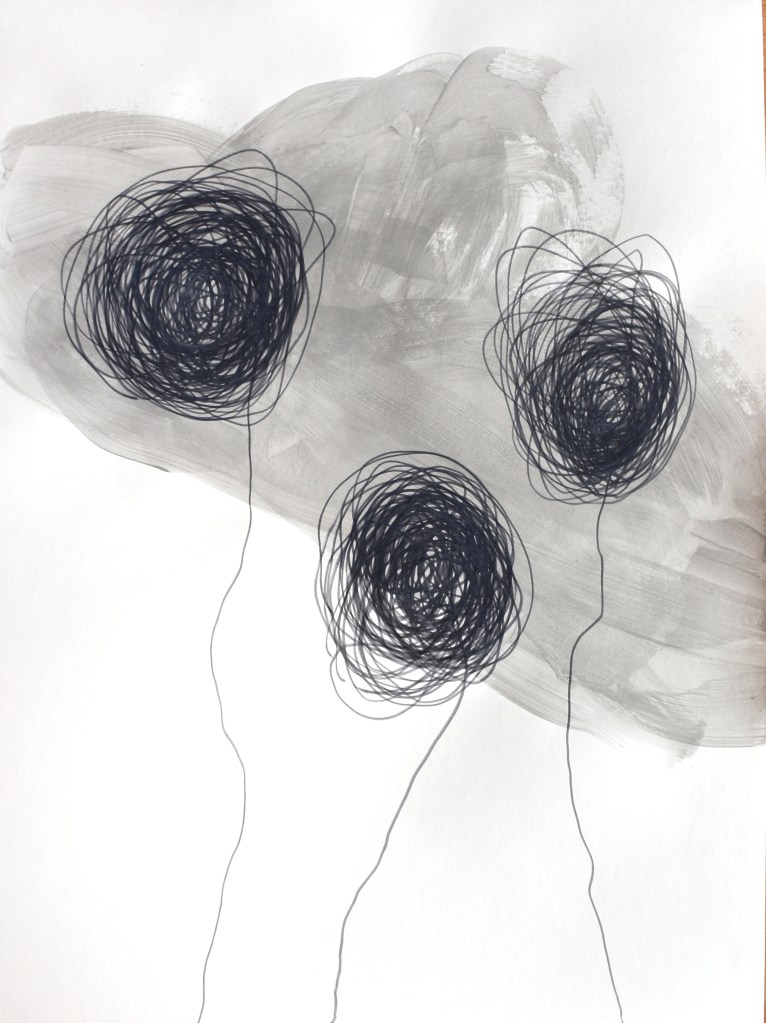 J’ai réalisé cette série de peintures début 2020. Comme l’annonce le titre, c’était pour moi une période très grise, très floue. C’est en prenant du temps pour créer cette série qu’un lâcher prise s’est installé. Les esquisses ont patienté un long moment dans ma tablette avant d’être réalisées en peinture, puis elles ont tardé a être finies. Tout compte fait, cette série aura mûri pendant 5 mois, là où d’habitude, la création me prenait 5 jours. Les formes ont évolué et changé au cours de l’attente et le vocabulaire s’est diversifié, inspirés notamment de Franz West ou de Paul Cox. Ce fût une période de grands changements que je tends à révéler au sein de ces peintures.