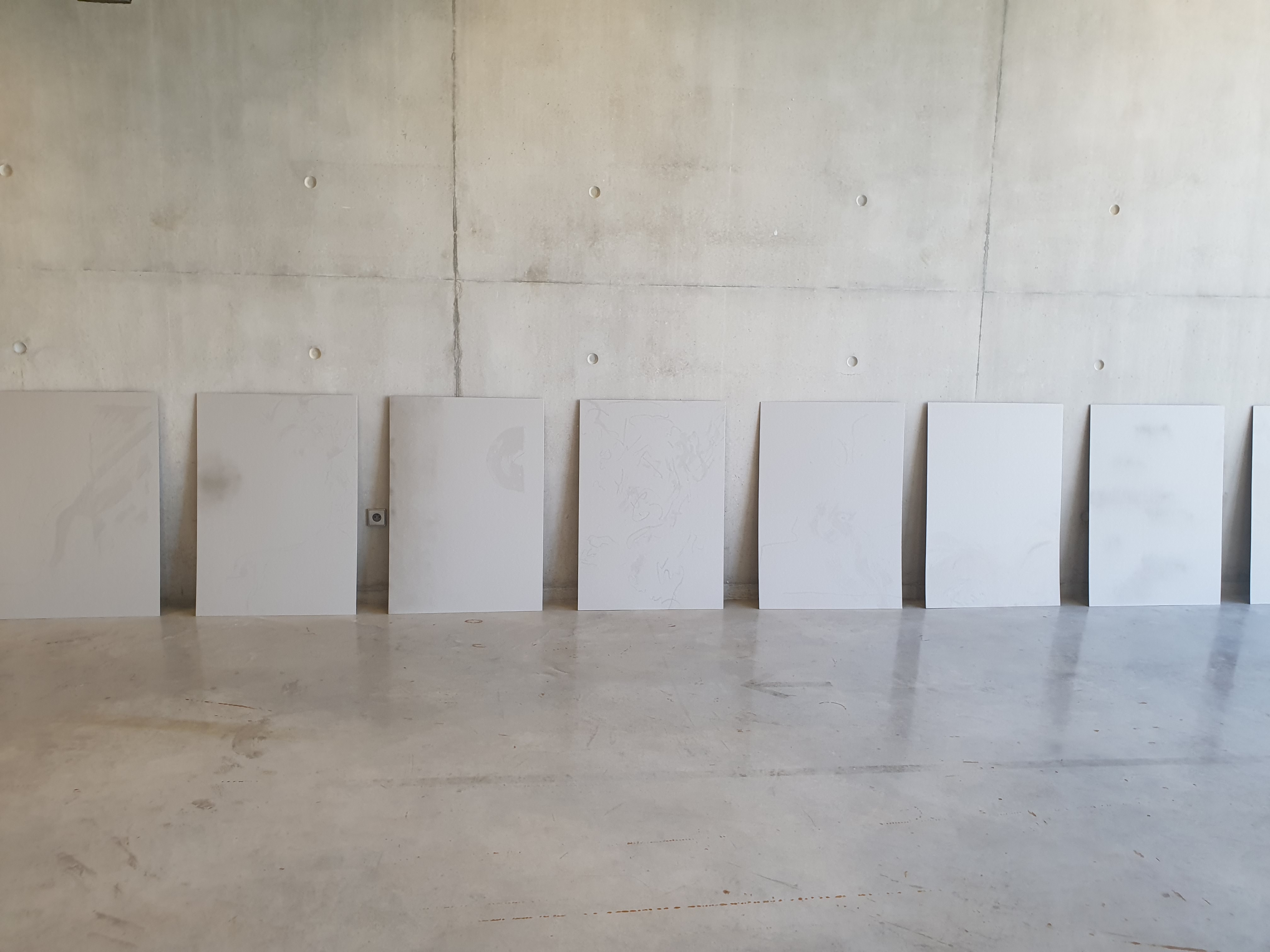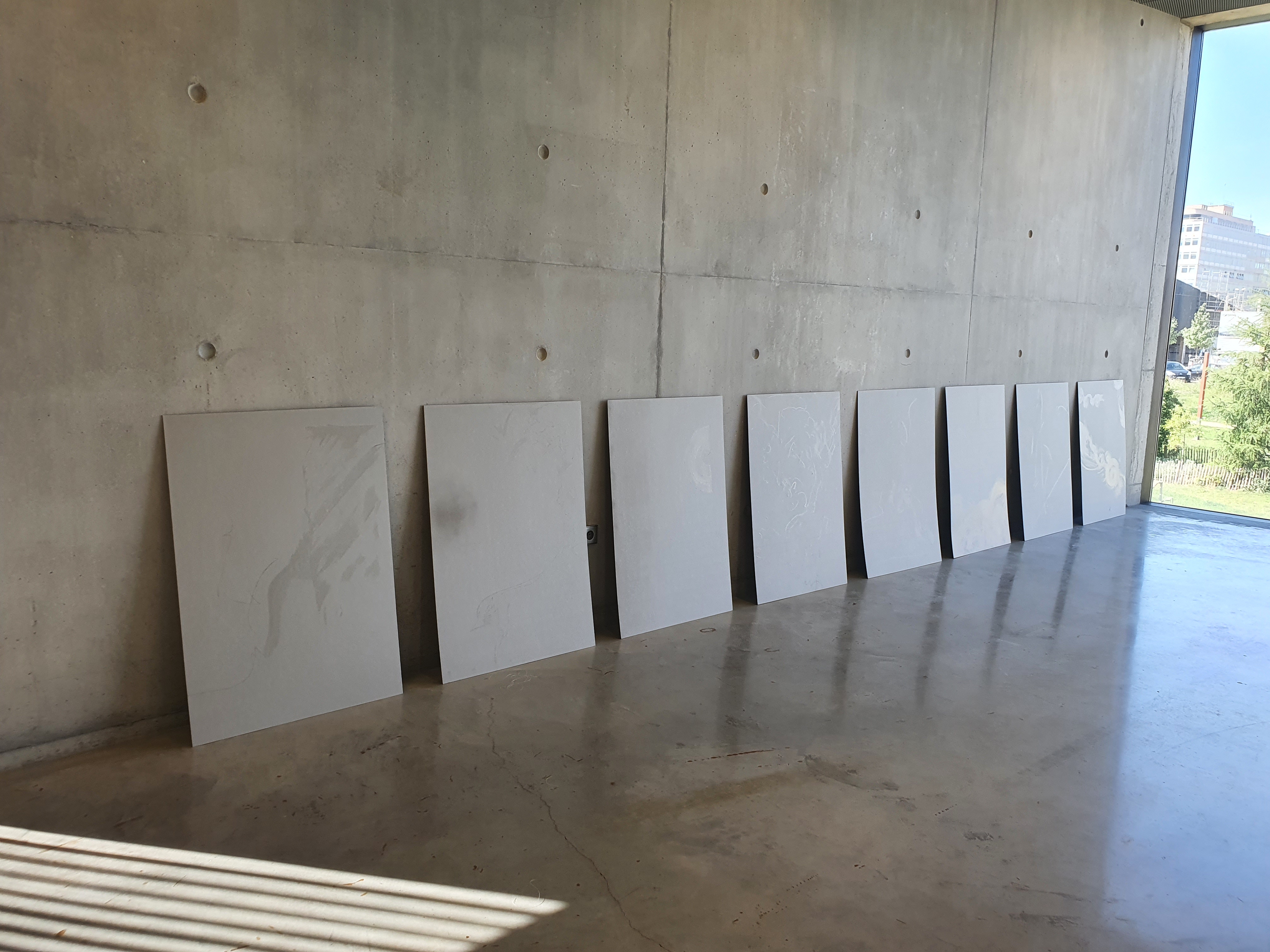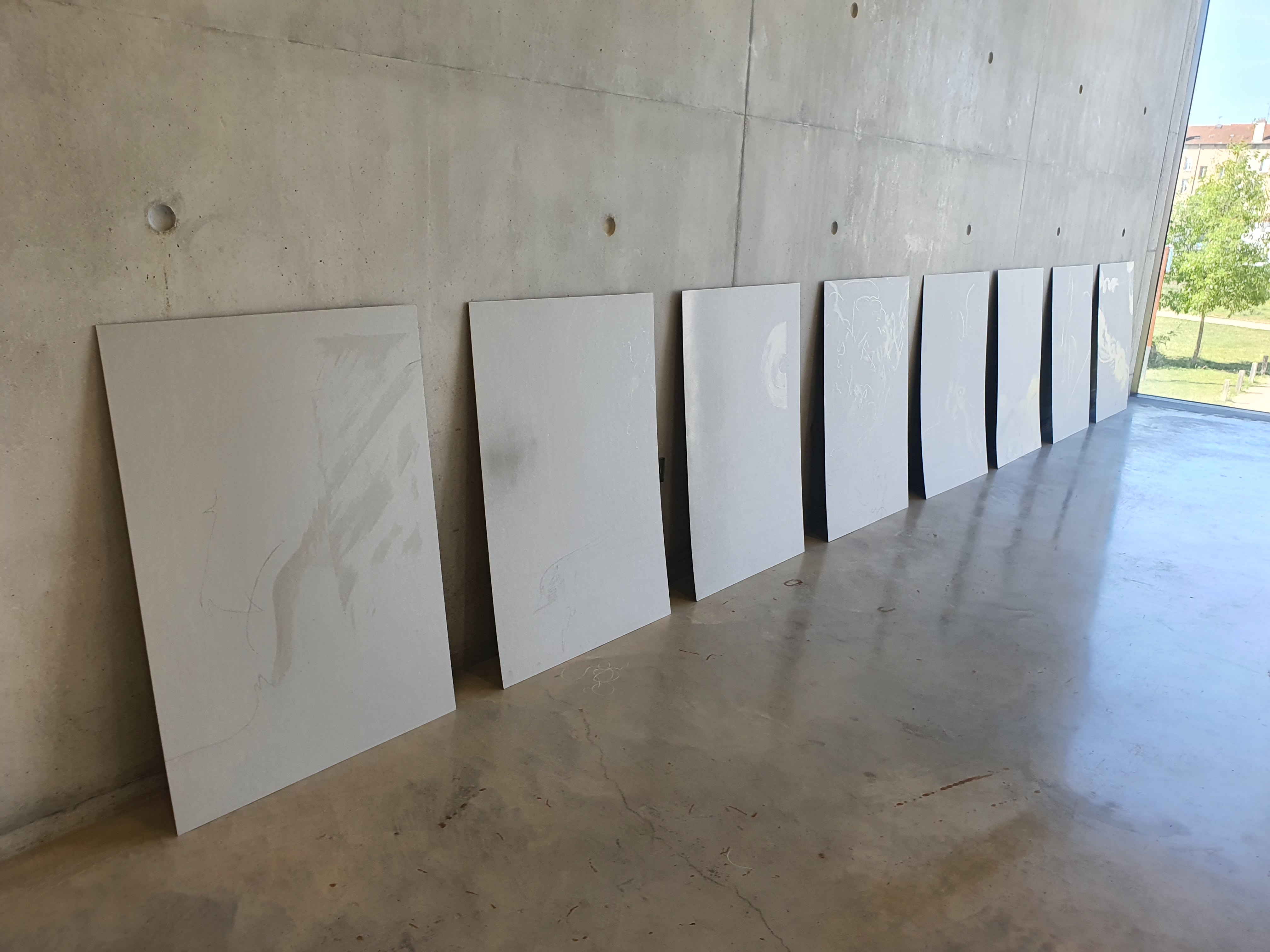 colle vinylique, vernis aérosol et carton gris, 60 x 80 cm, 10 formats, 2021-2022,