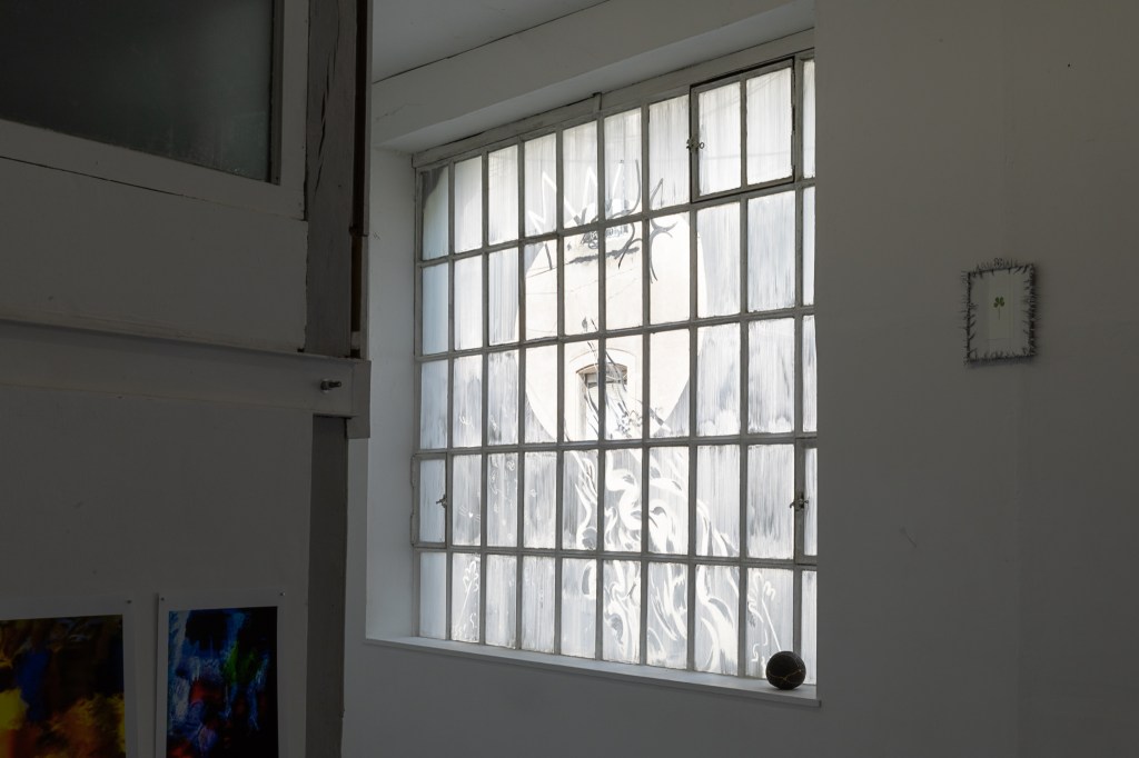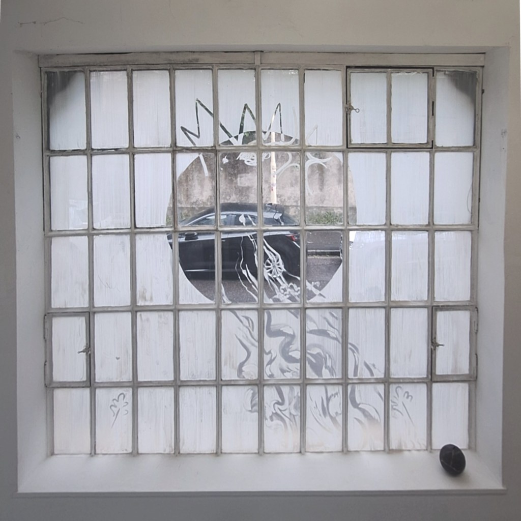 Il s’agit d’une série de peintures protocolaires éphémères réalisées sur vitres pour des évènements culturels. Celles-ci existent dans de multiples sens : directement sur la fenêtre ou se projetant dans l’espace en fonction du moment de la journée.