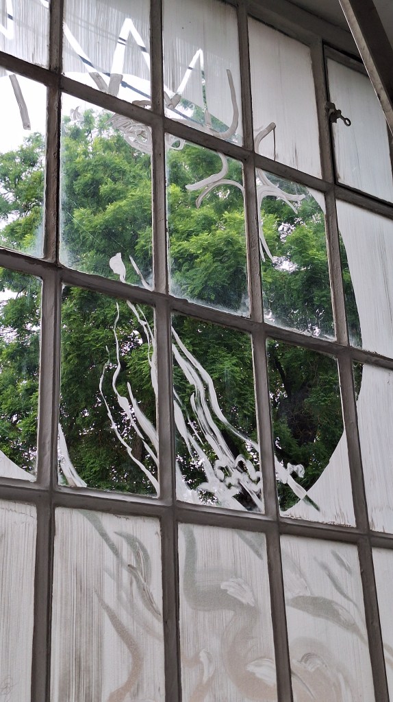 Peinture au blanc de meudon sur vitres,