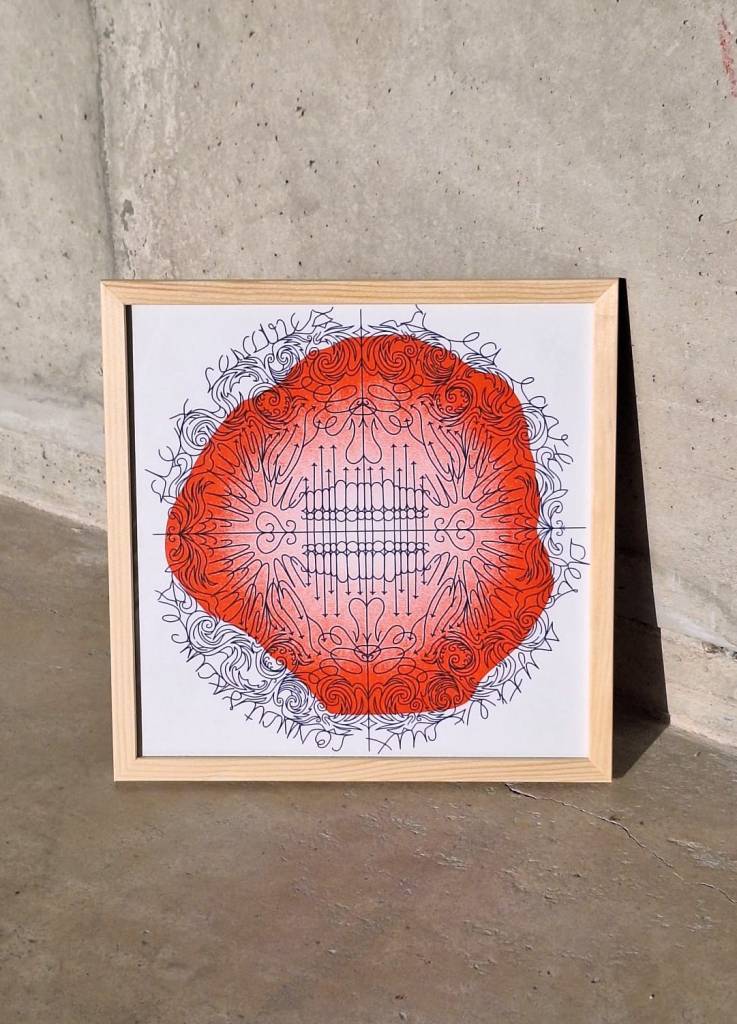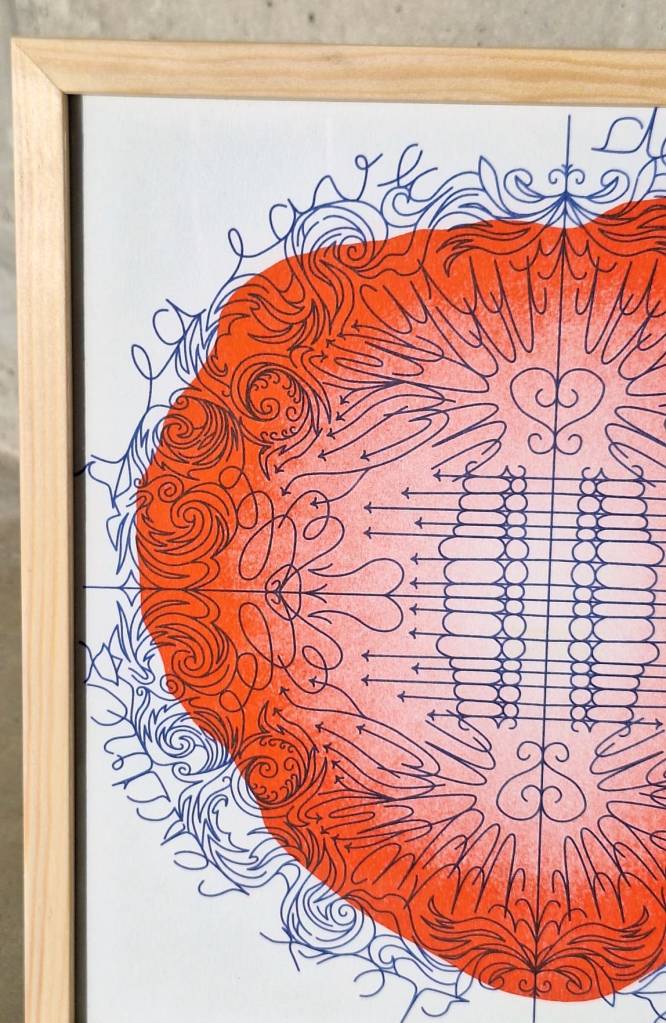 Cette risographie lie de nombreuses recherches effectués sur les volcans (Lac Pavin, Turkmenistan, Dante, Auguste Rodin, etc).