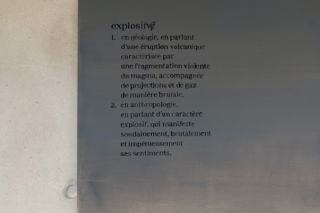 Cette peinture met en avant le début de ma recherche. En commençant à réfléchir au lien possible entre les phénomènes volcaniques et les émotions, j’ai trouvé des liens évidents avec ces deux adjectifs qui caractérisent les éruptions. Ainsi, j’ai cherché à réécrire ces définitions pour mettre en avant les parallèles dans une typographie inclusive.
